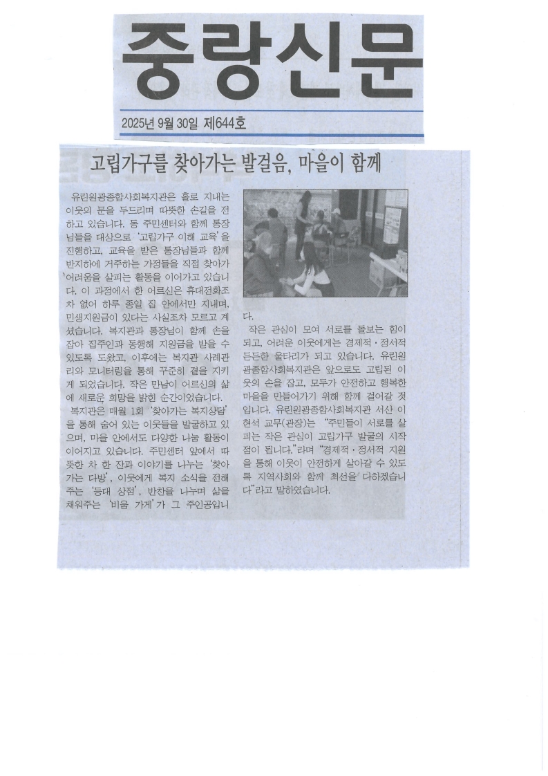 2025.9.30 고립가구를 찾아가는 발걸음, 중랑신문