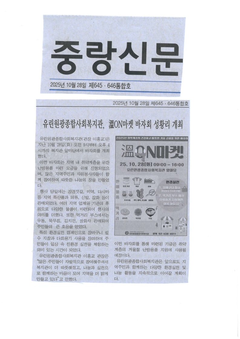 2025.10.28 溫ON마켓 바자회 성황리 개최, 중랑신문