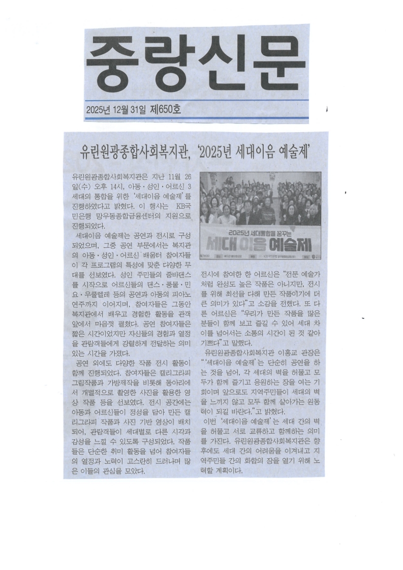 2025.12.31 , 2025년 세대이음 예술제 진행 , 중랑신문