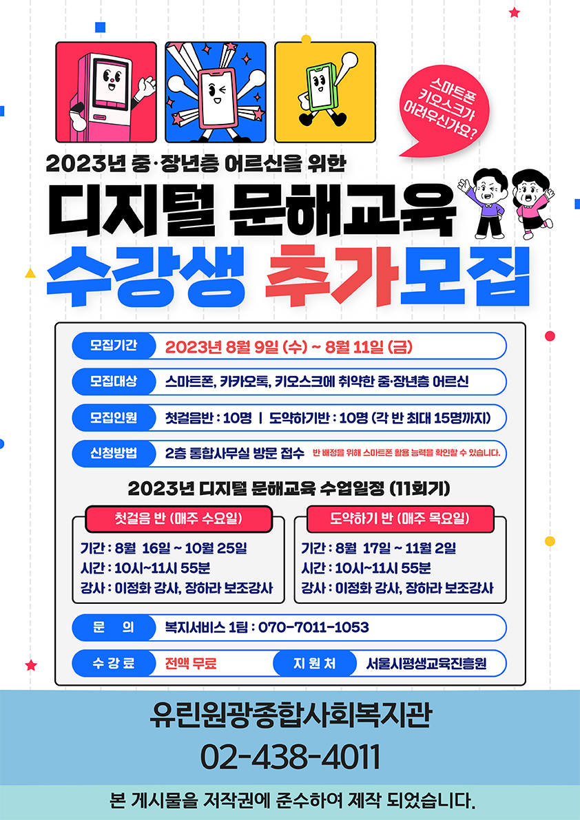 4060 중장년층을 위한 디지털 문해교실 참여자 모집
