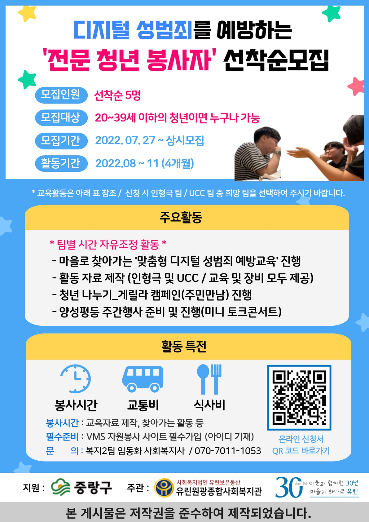 디지털 성범죄를 예방하는 '전문 청년 봉사자' 선착순 모집