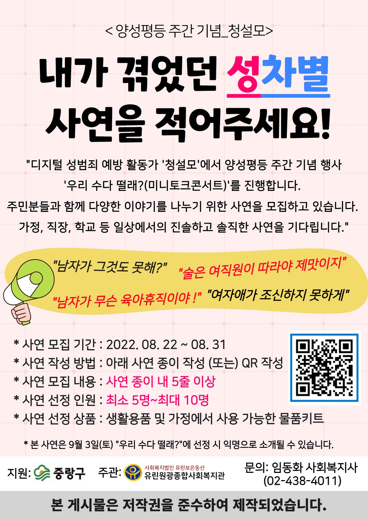 양성평등 주간 기념 행사 '내가 겪었던 성차별 이야기' 사연 신청자 모집