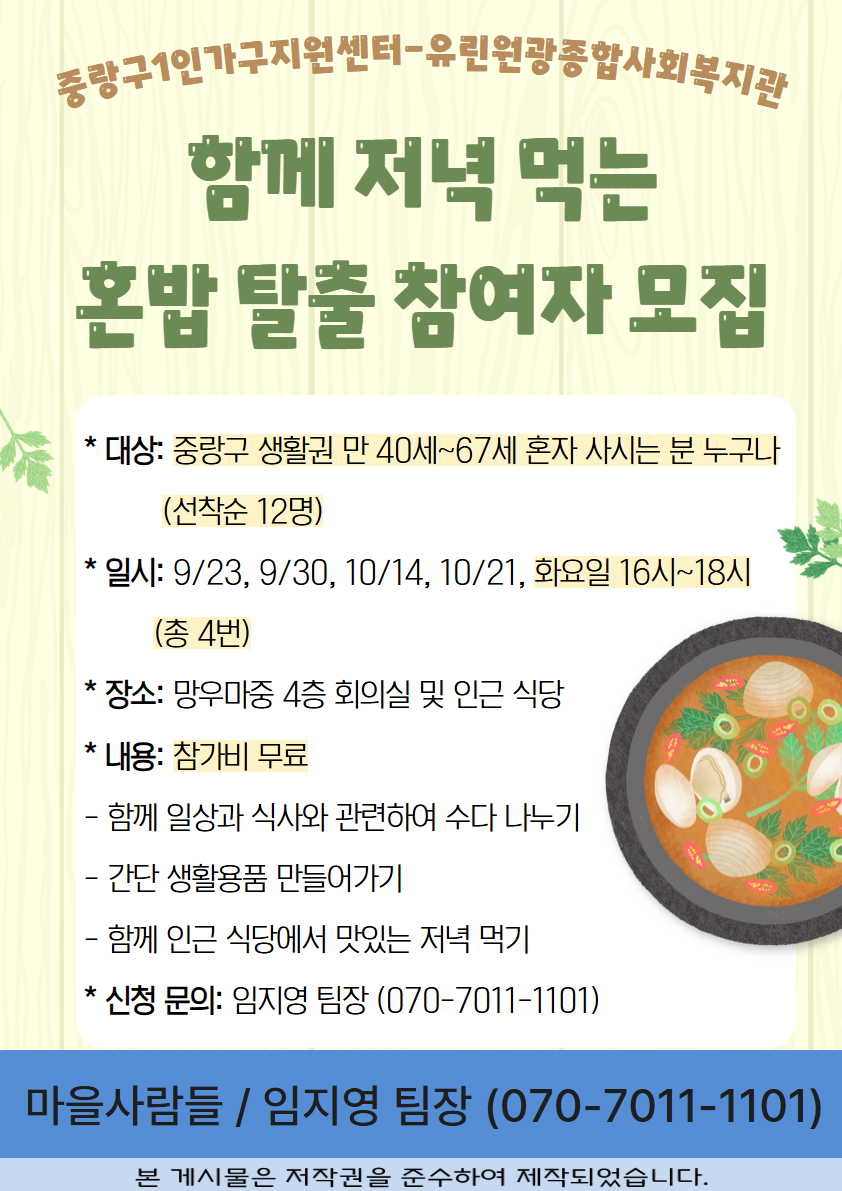 혼자 사시는 중장년 (만 40~67세) 분들과 함께