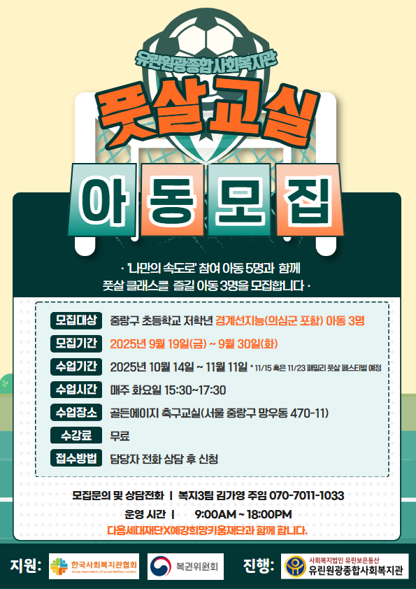 느린학습아동 '풋살 교실' 참여 아동 모집