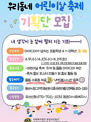 유린이룸(면목2동 거점공간) "우리동네 어린이날 축제 기획단 모집"