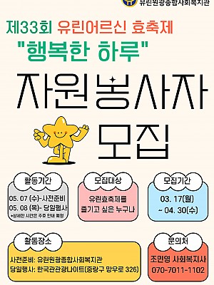 유린어르신 효축제 '행복한 하루' 자원봉사자 모집