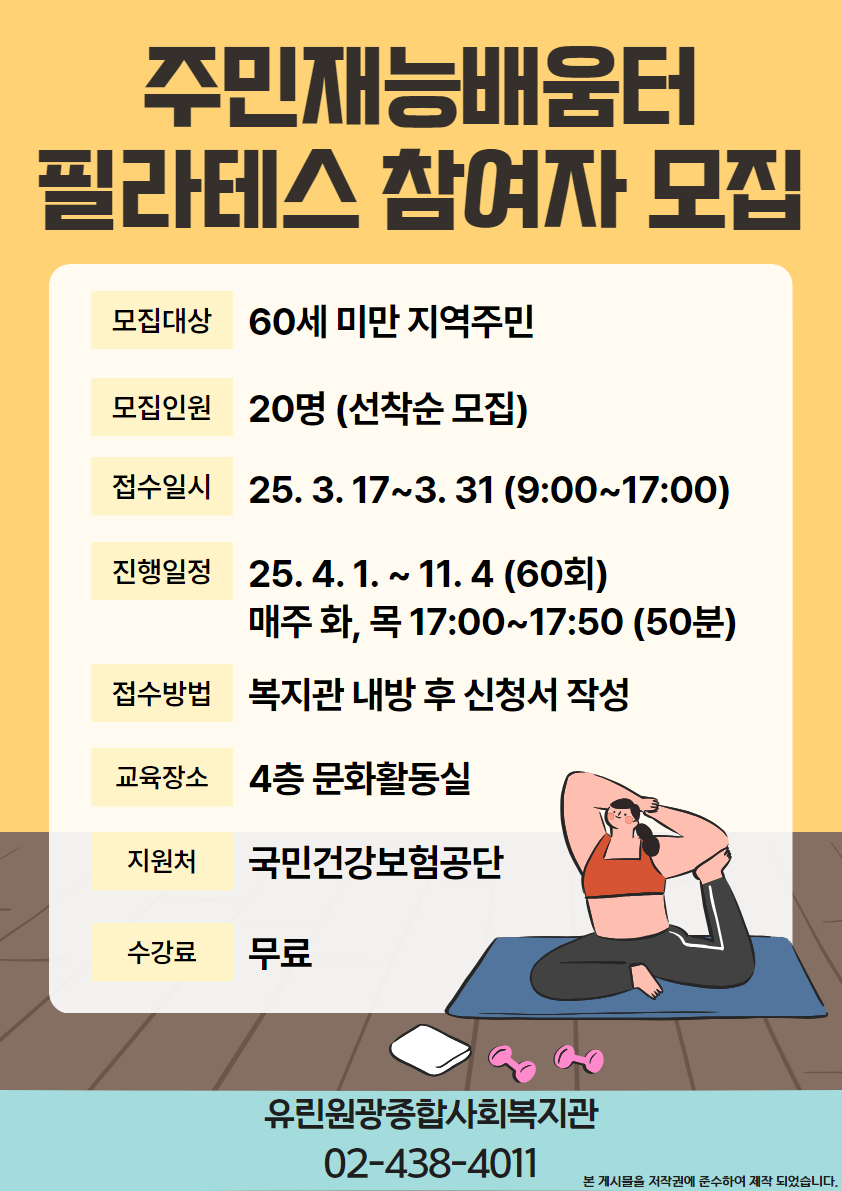 주민재능배움터 필라테스 참여자 모집