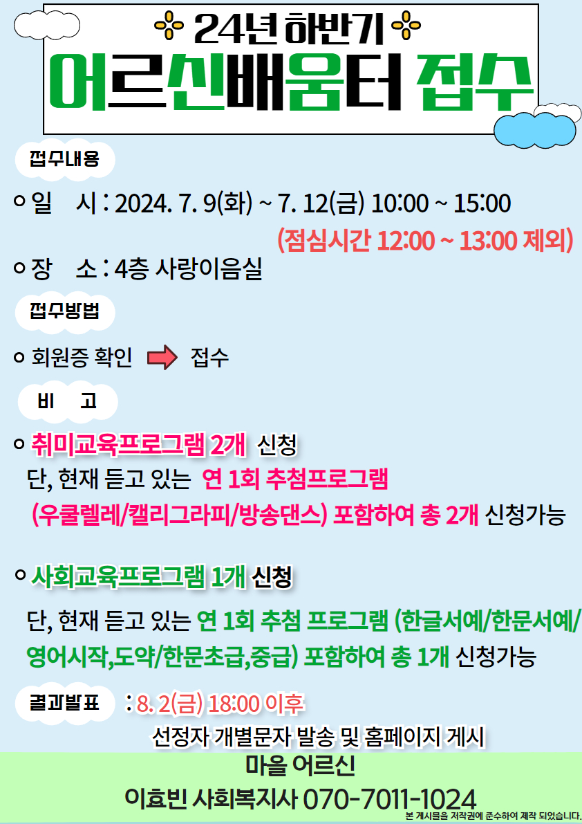 2024년 어르신배움터/동아리 여름방학 안내