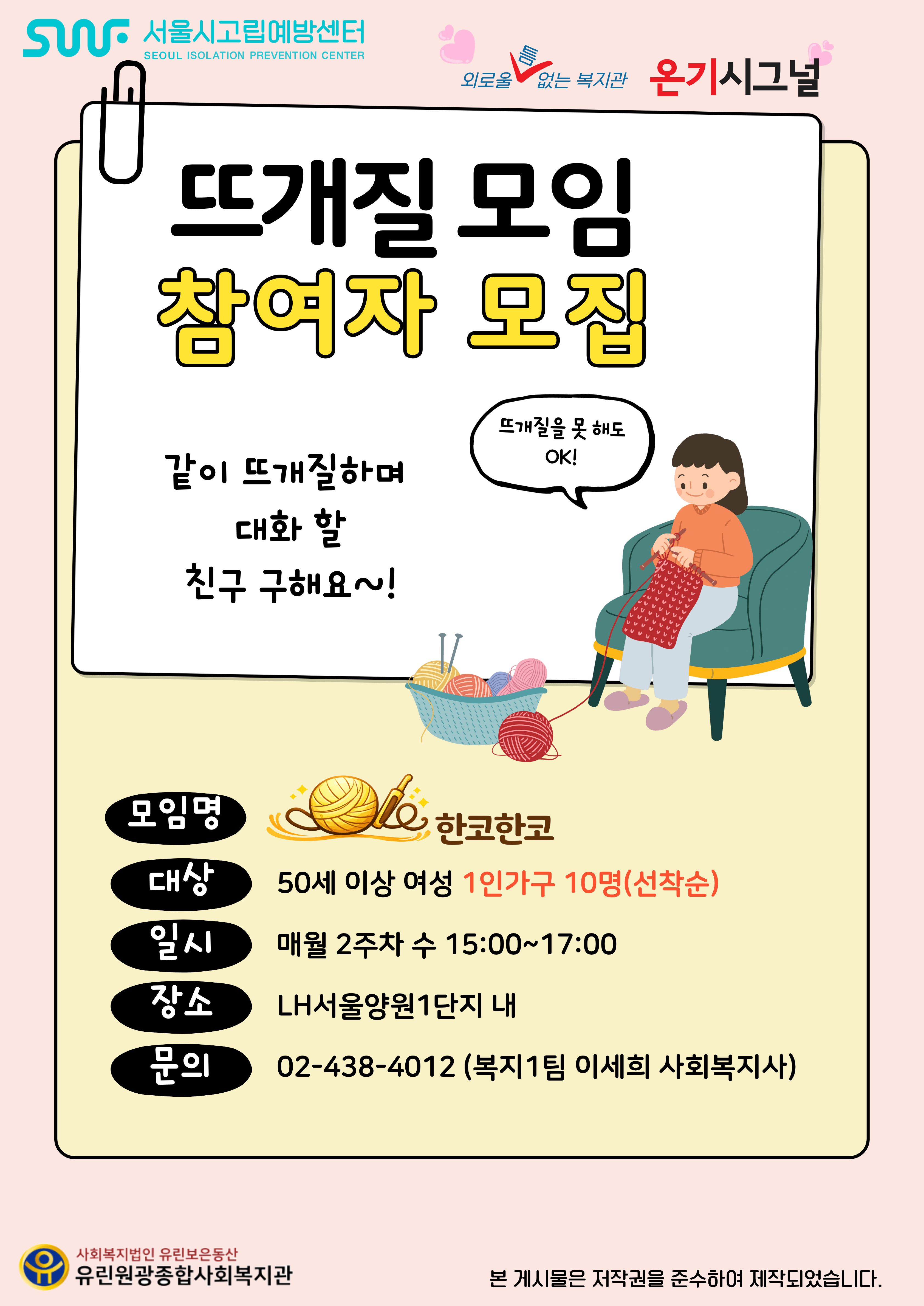 망우본동 1인가구 주민모임 "뜨개질모임 - 한코한코"