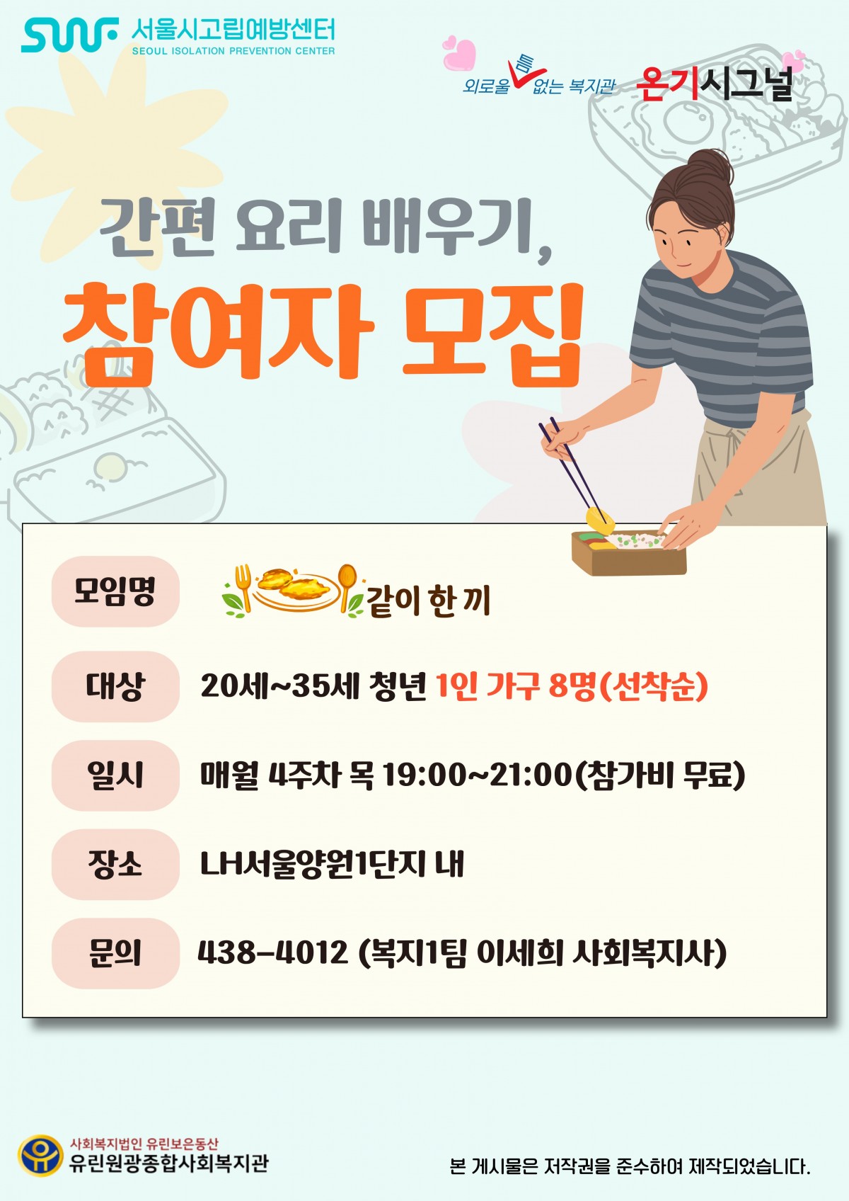 망우본동 1인가구 주민모임 "간편 요리 배우기 - 같이 한 끼"