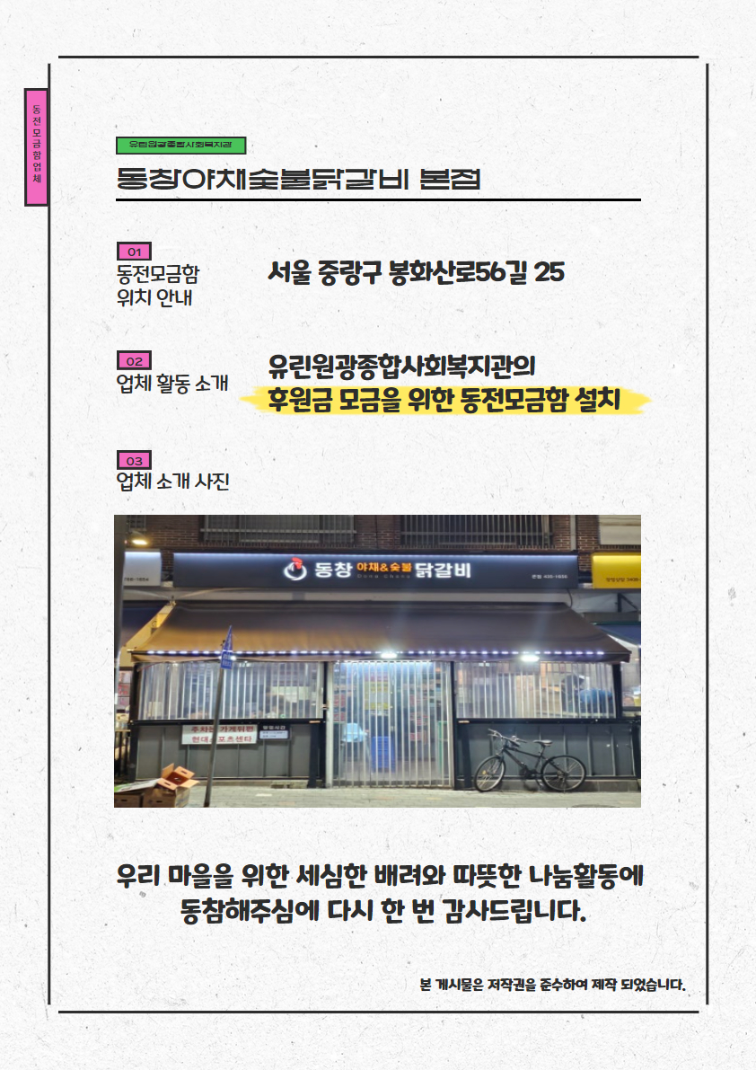 [동전모금함 업체 소개] 동창야채숯불닭갈비 본점