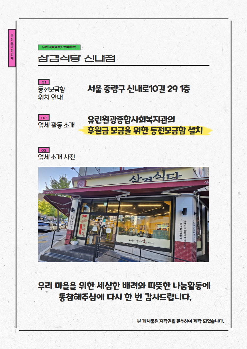 [동전모금함 업체 소개] 삼겹식당 신내점