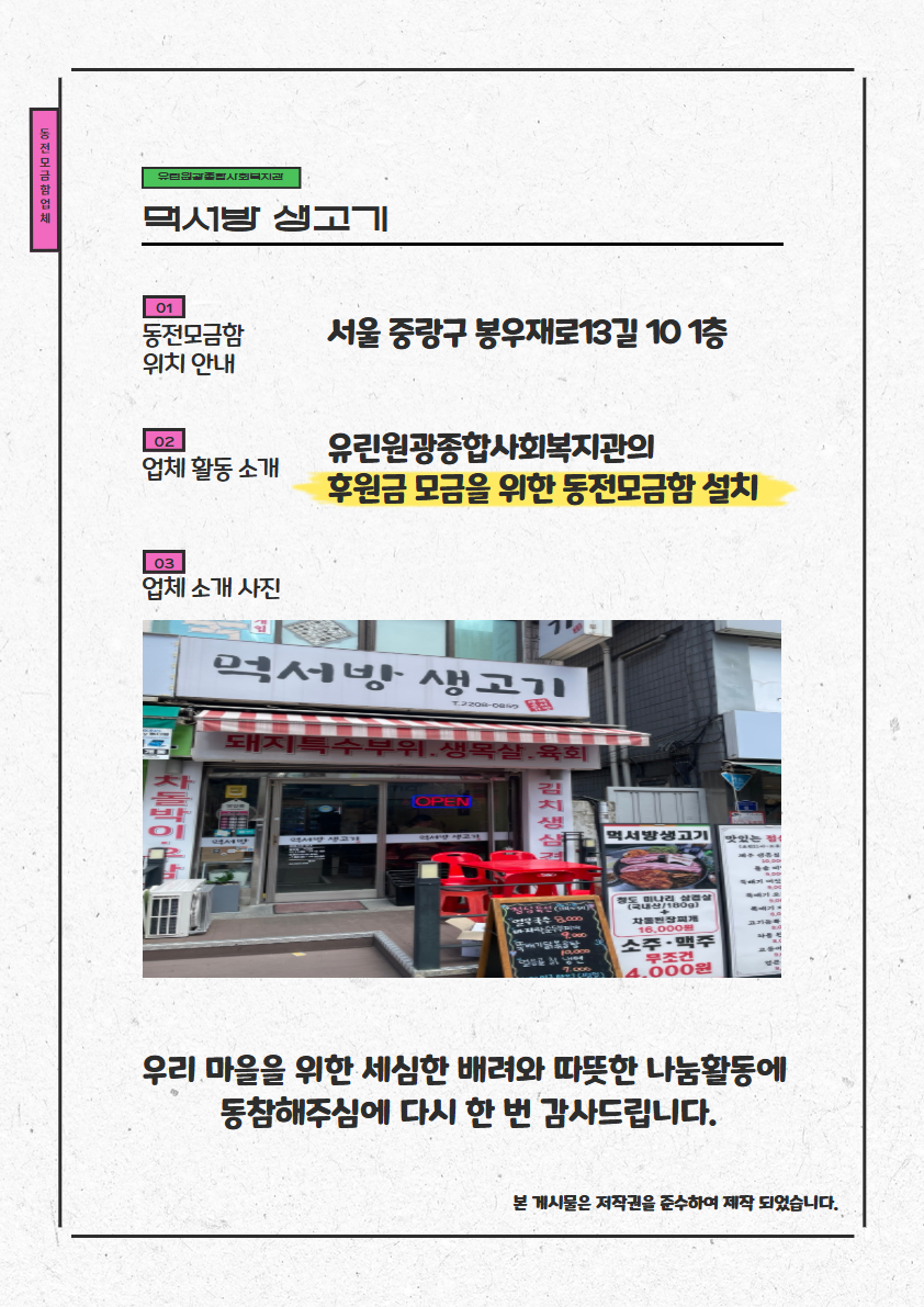 [동전모금함 업체 소개] 먹서방 생고기