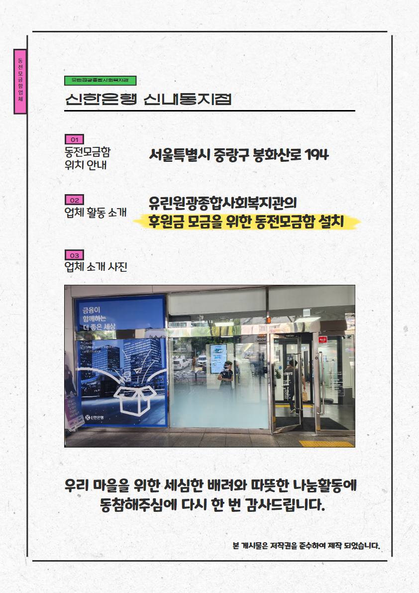 [동전모금함 업체 소개] 신한은행 신내동지점