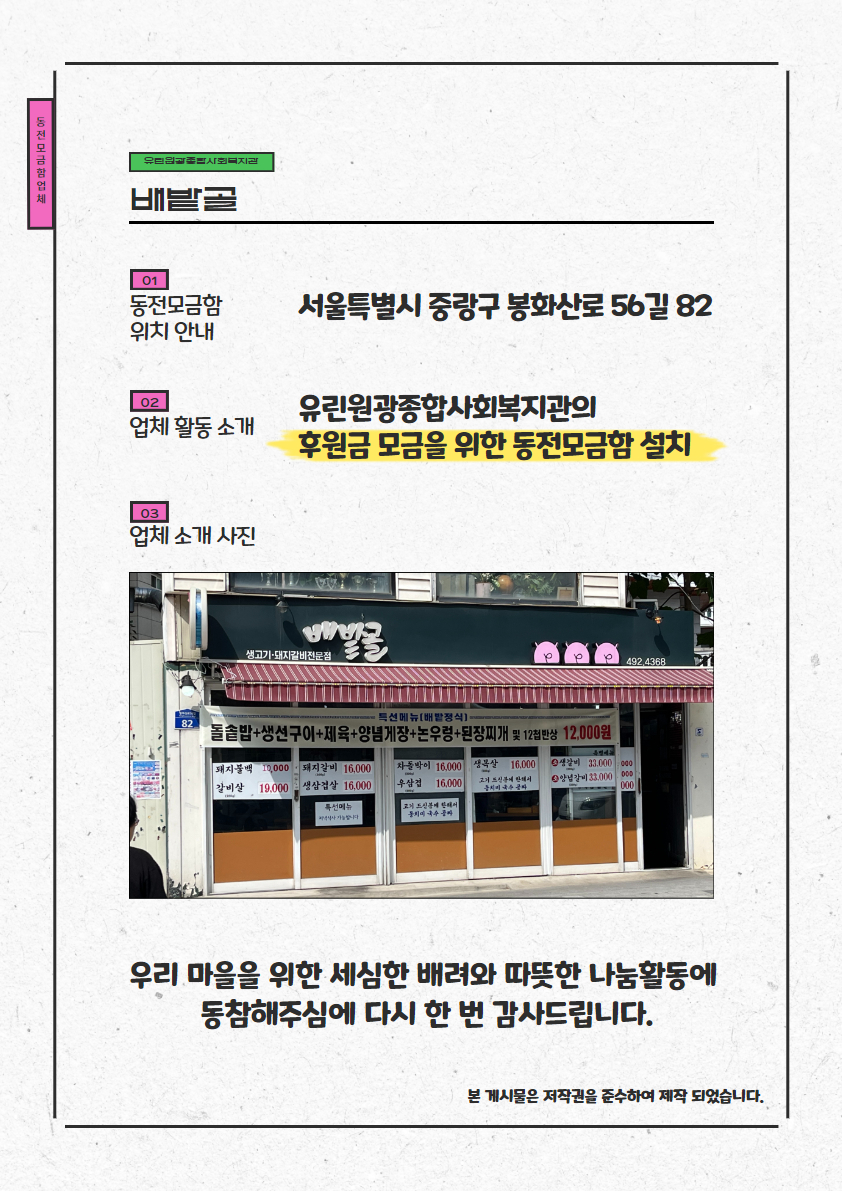 [동전모금함 업체 소개] 고봉민김밥인 서울중랑구청사거리점