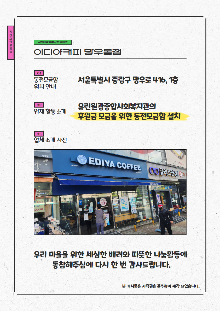 [동전모금함 업체 소개] 이디야커피 망우동점