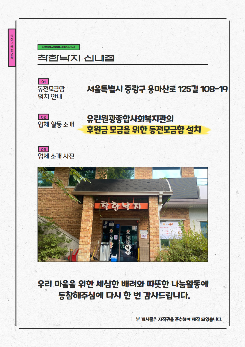 [동전모금함 업체 소개] 수협바다마트 신내점