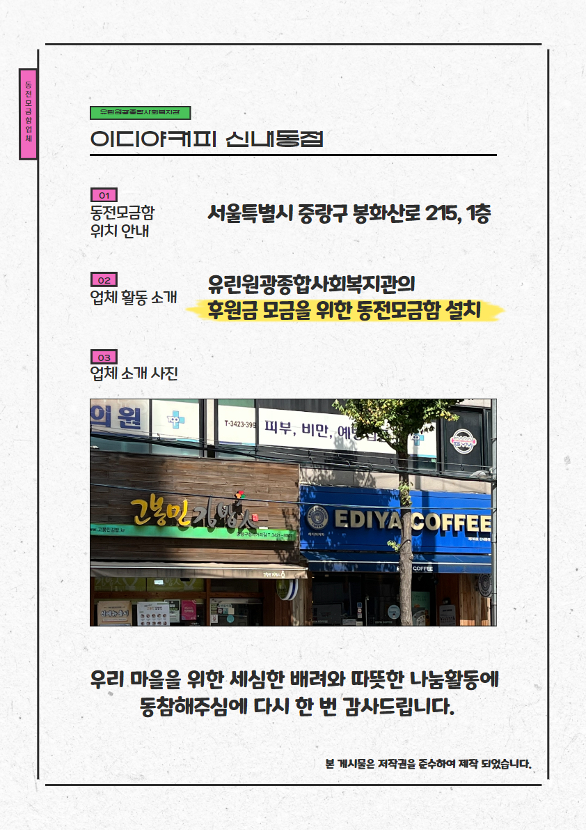 [동전모금함 업체 소개] 이디야커피 신내동점