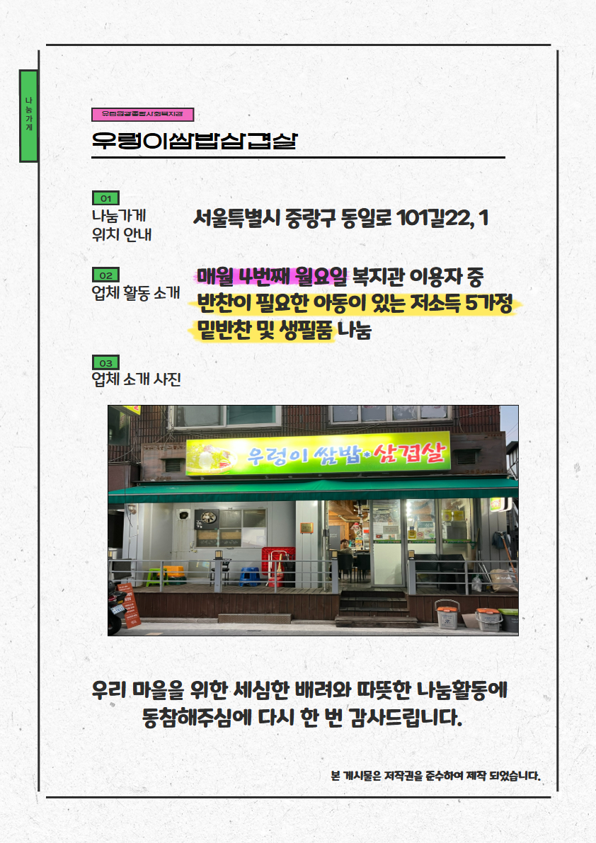 [나눔가게 소개] 우렁이쌈밥삼겹살