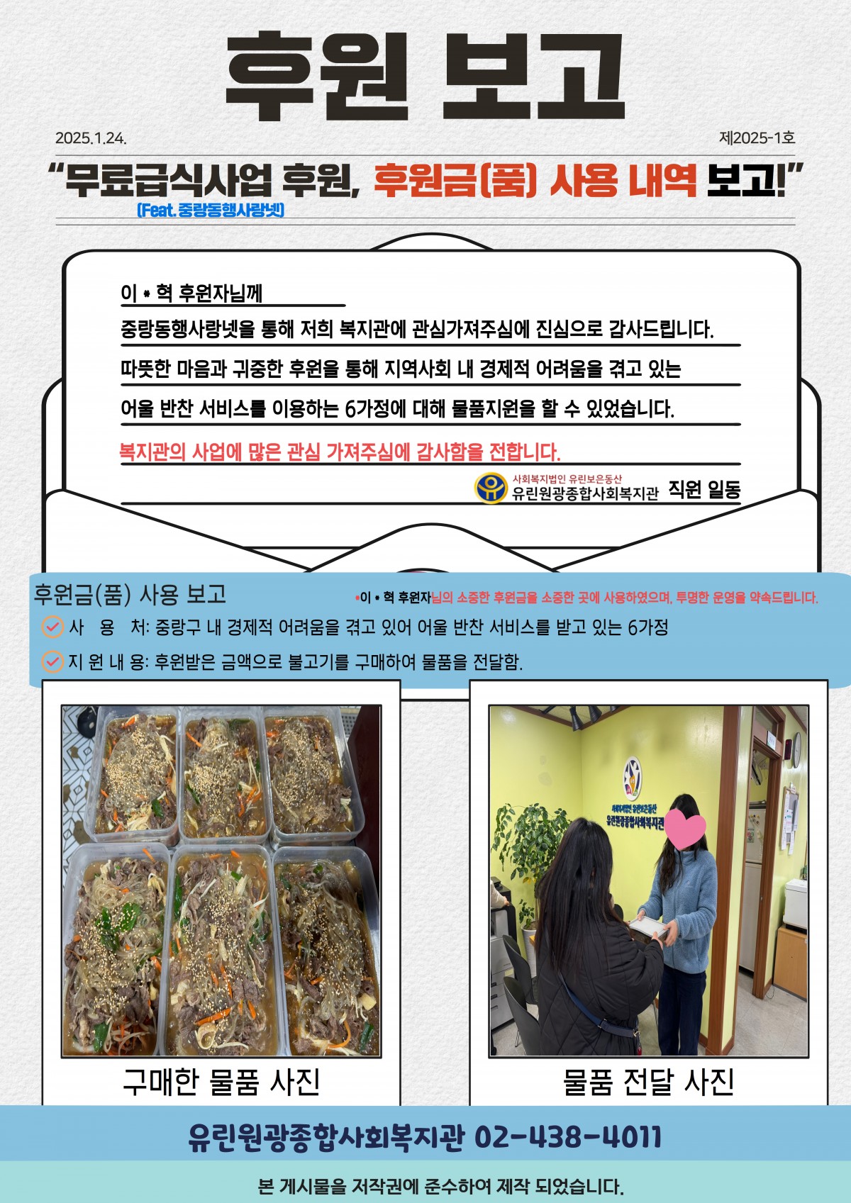 보내주신 관심과 사랑을 지역사회에 소중히 나눴으며 투명하게 운영할 것을 지역주민들께 약속드립니다!