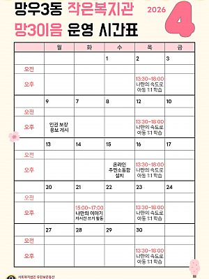 망우3동 작은복지관 '망3이음' 운영 시간표
