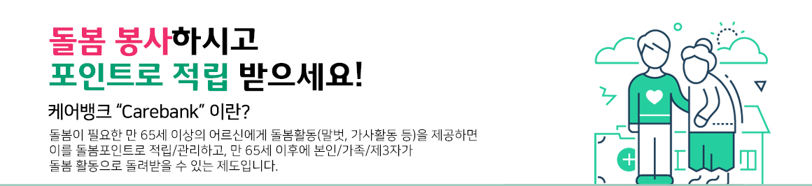 | 돌봄활동 1시간 제공 시 1돌봄포인트가 적립됩니다. (1일 최대 4돌봄포인트 적립) 단, 이동시간 1시간 이상인 경우 1돌봄포인트 추가 인정 |