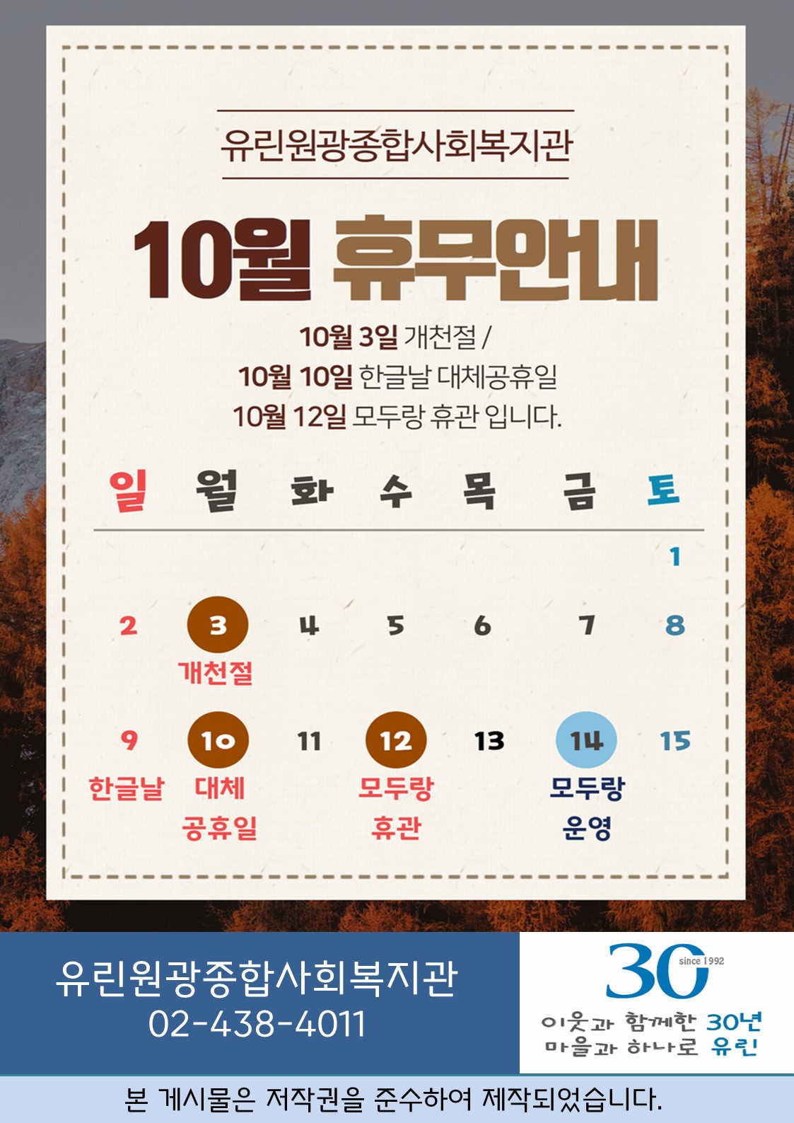 10월 복지관 휴관 안내
